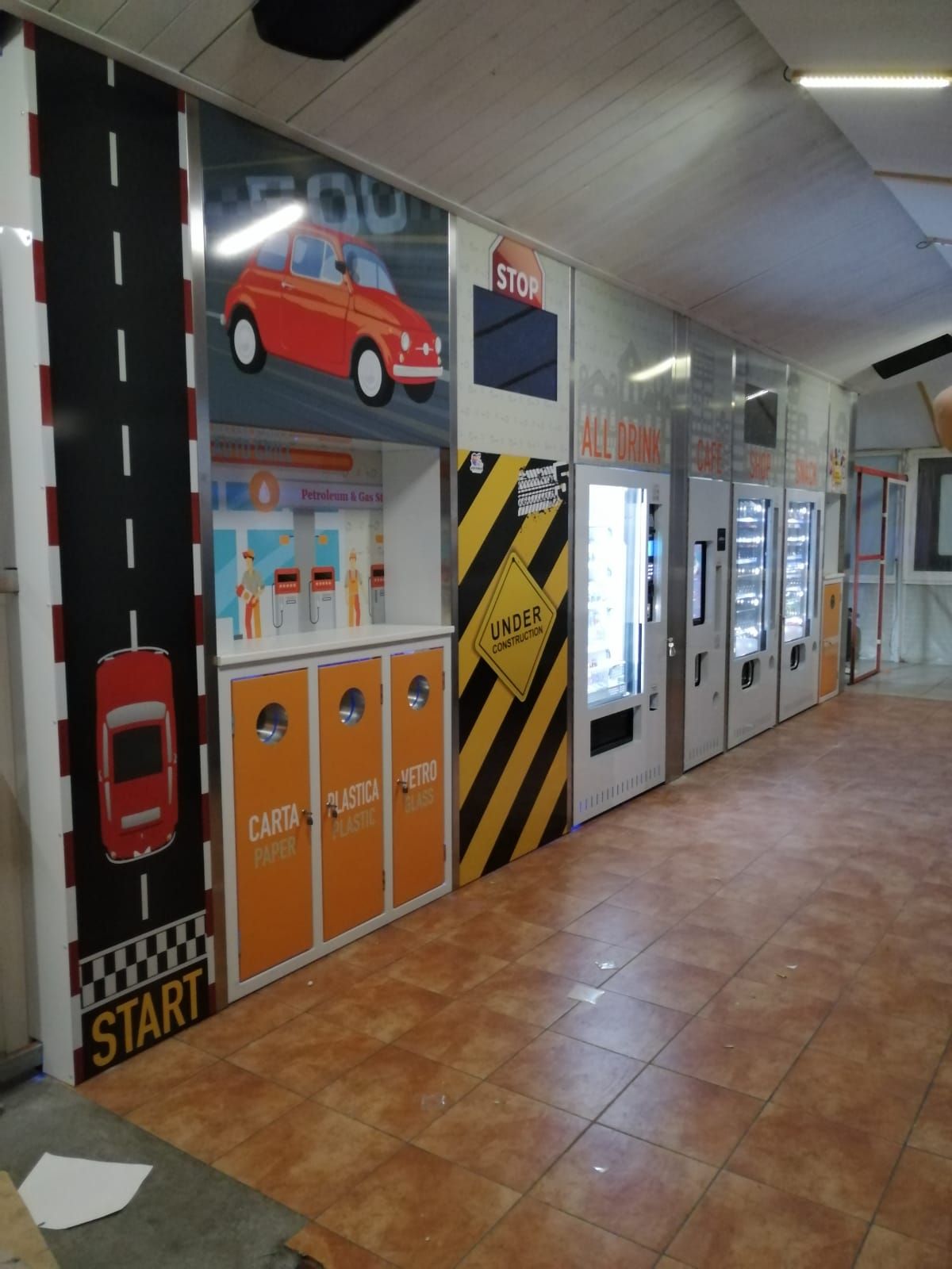 Arredo vending da esterno adatto a quelle zone urbane o di attrazione estiva ideali come punto ristoro dei passanti.